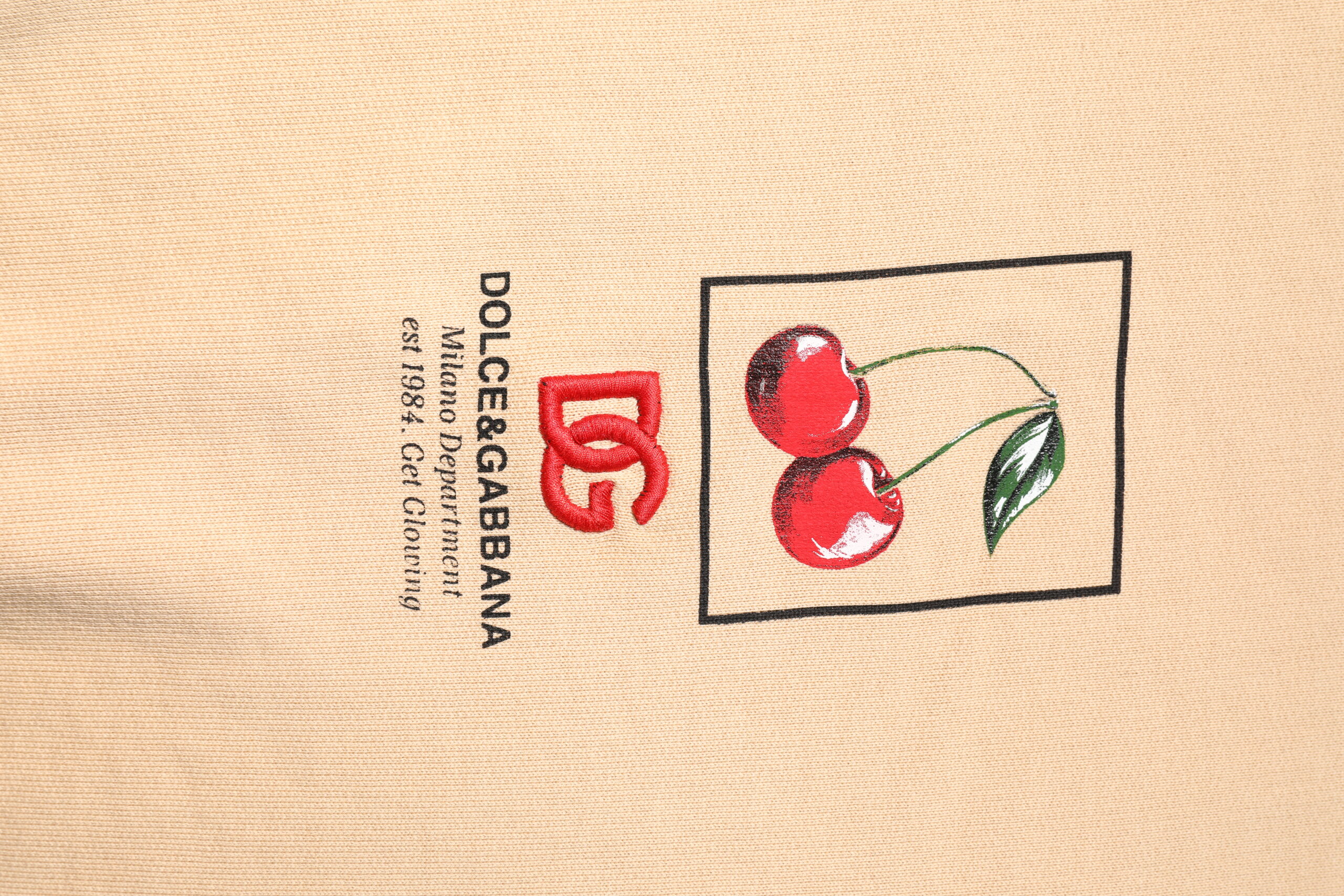 Beige Cherry Print Crew Neck Pullover Sweater