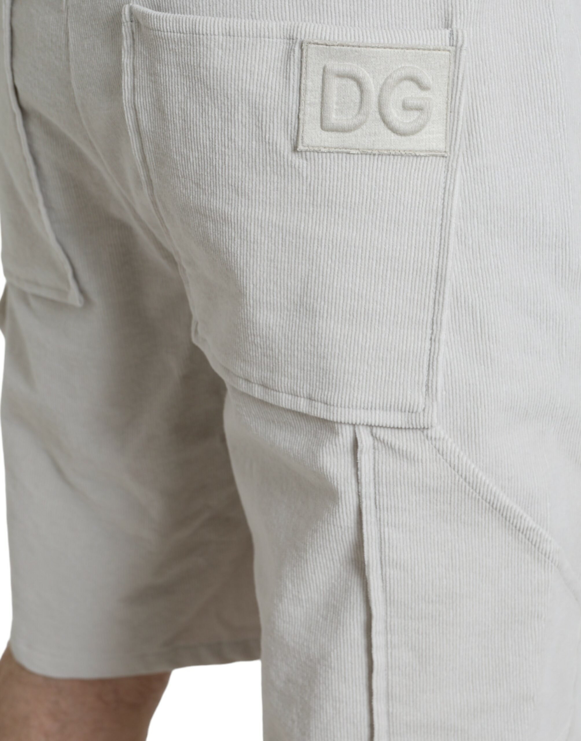 Beige Cotton Corduroy Logo Bermuda Shorts