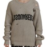 Beige Cotton Knitted Crewneck Pullover Sweater