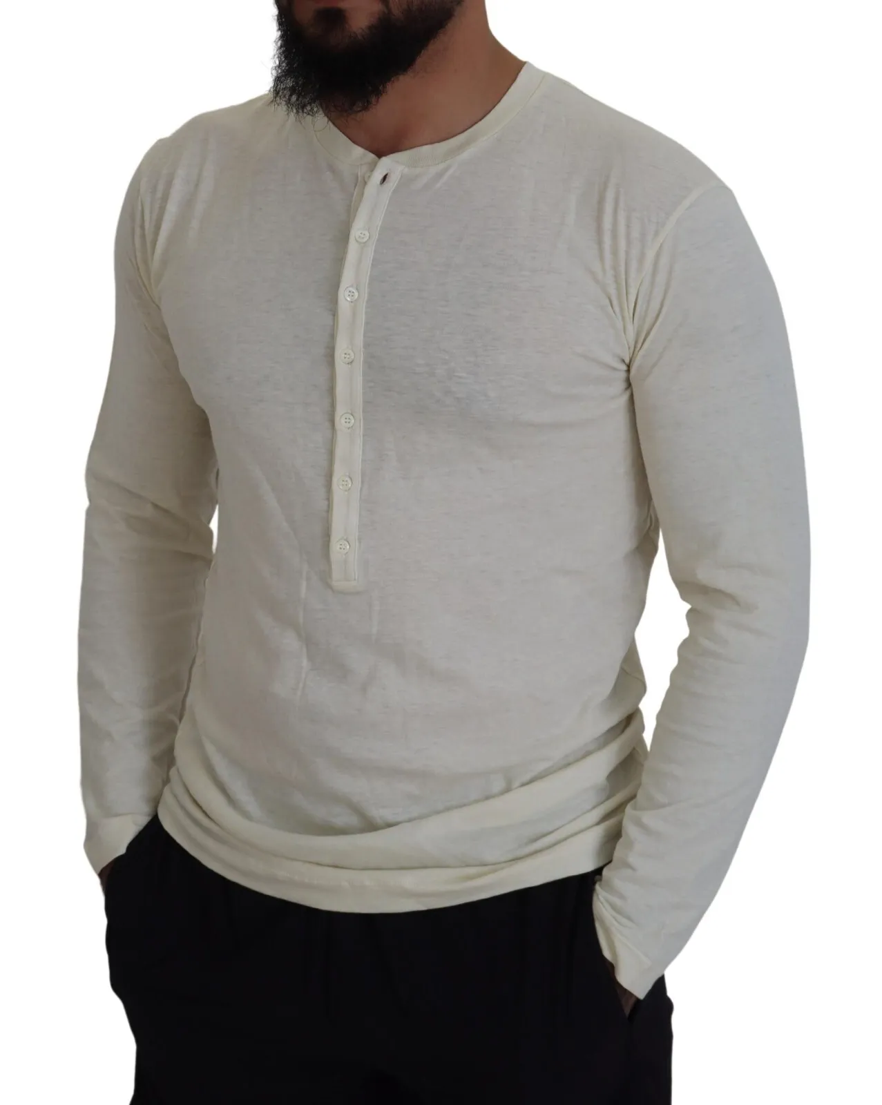 Beige Cotton Linen Long Sleeves Pullover Sweater