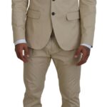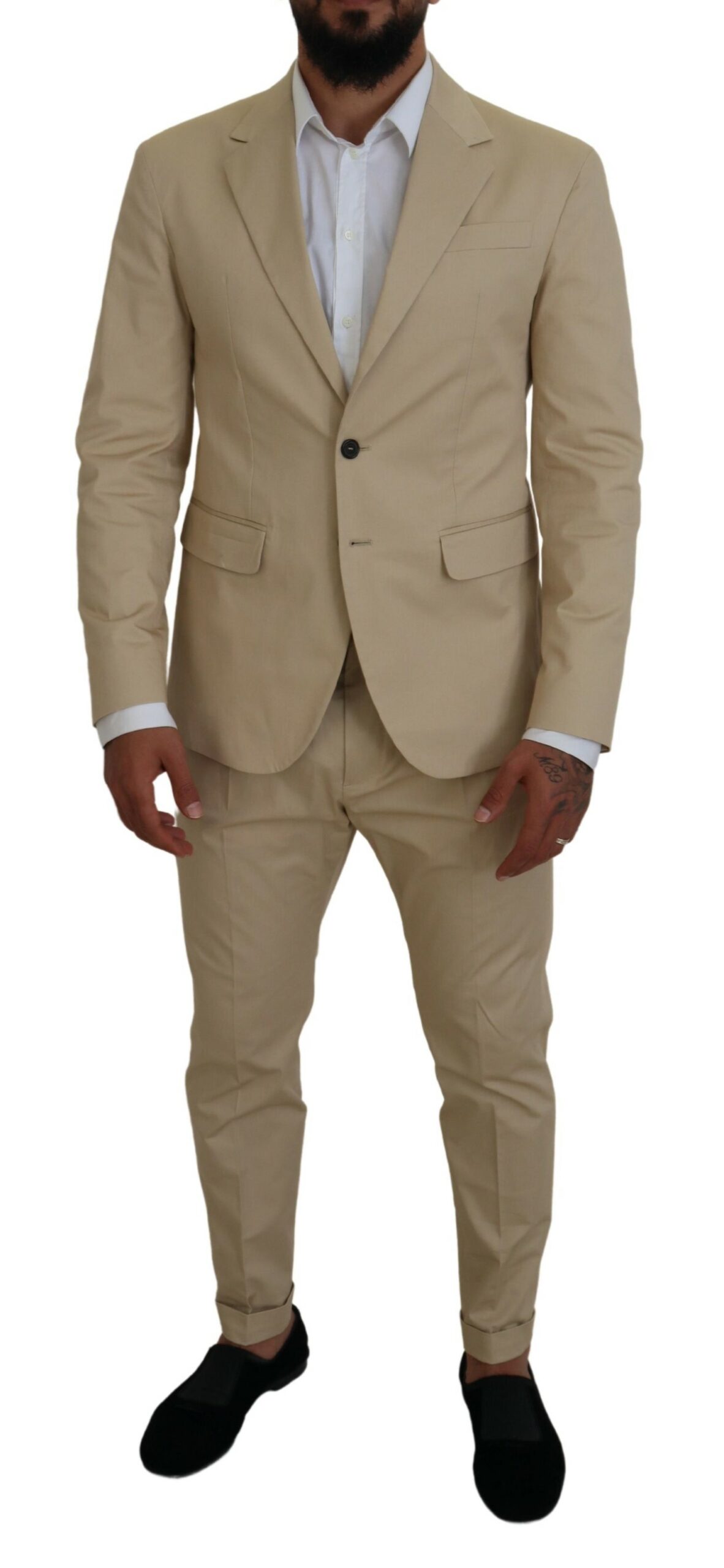 Beige Cotton Single Breasted 2 Piece CIPRO Suit