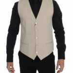 Beige Cotton Stretch Dress Vest Blazer