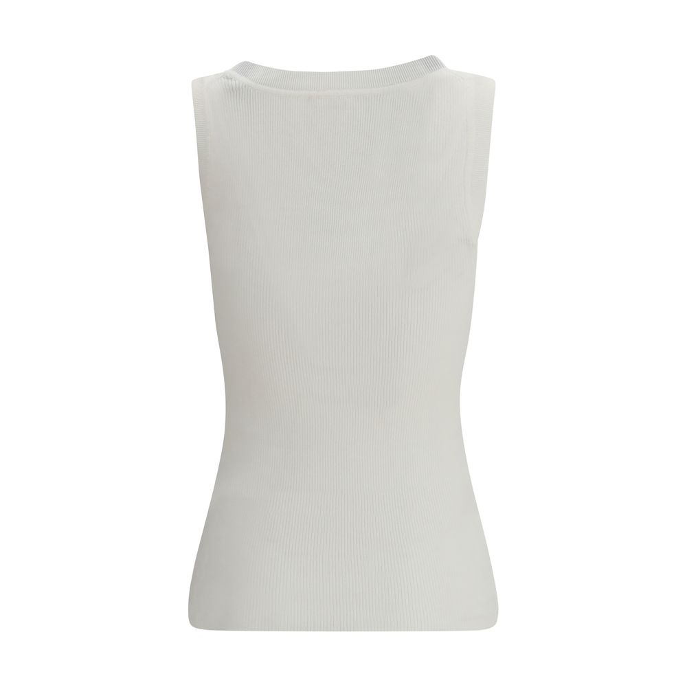 Beige Cotton Sleeveles T-Shirt