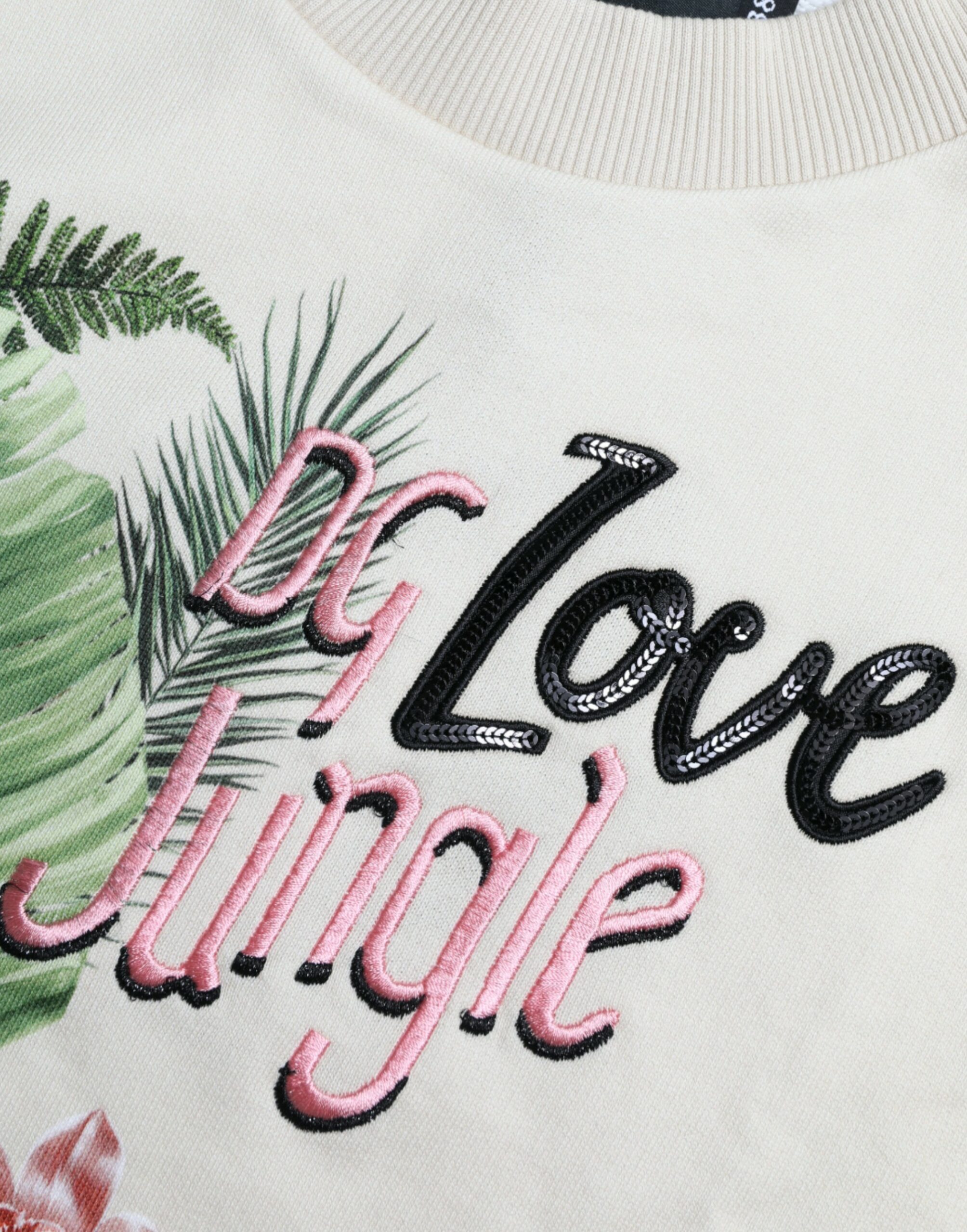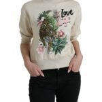 Beige Jungle Printed Cotton Pullover Sweater