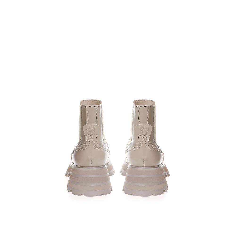 Beige Leather Chelsea Boots