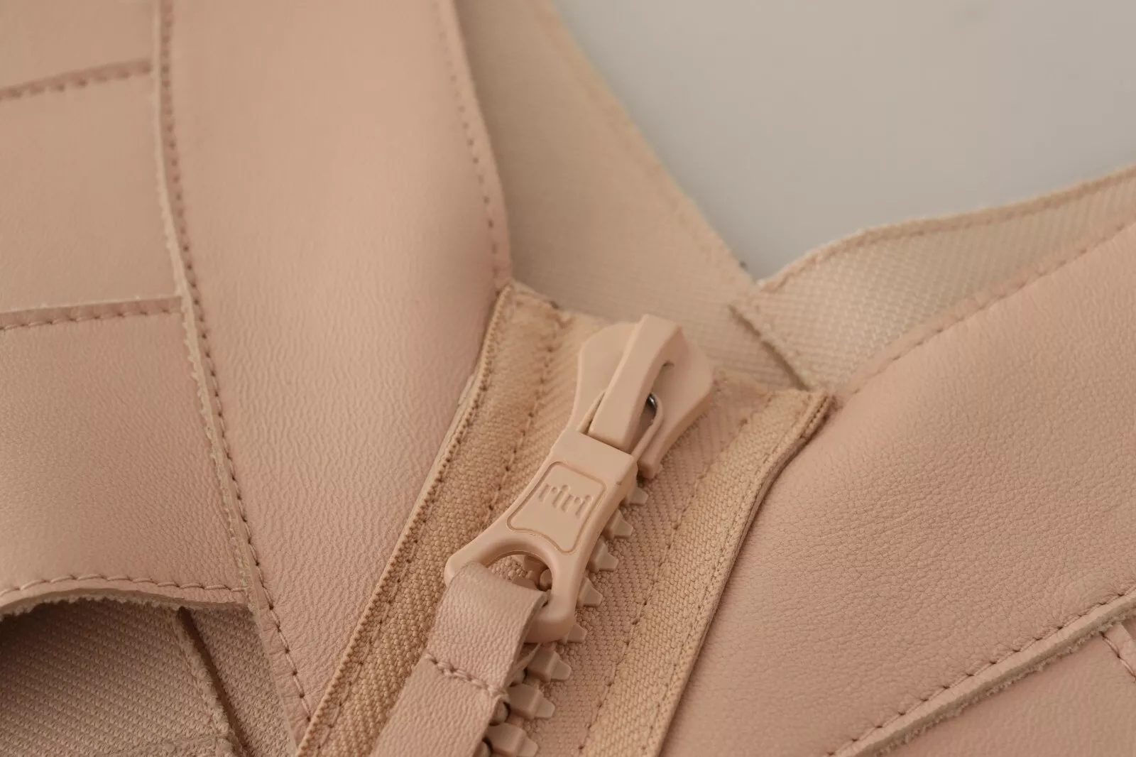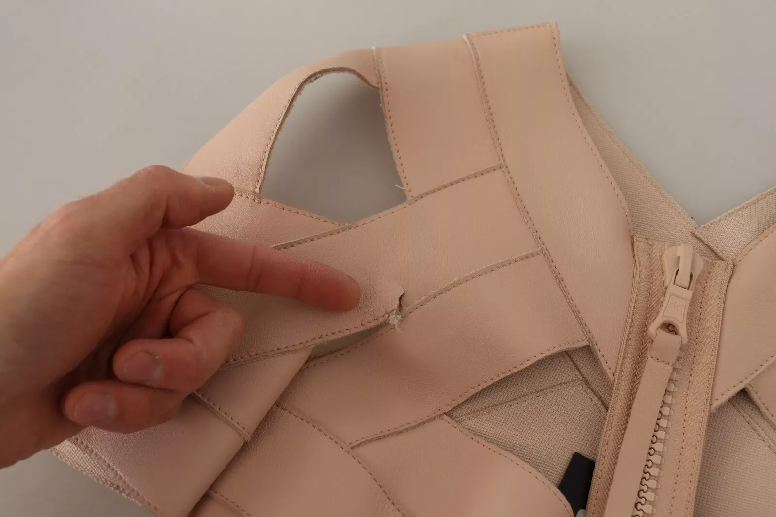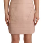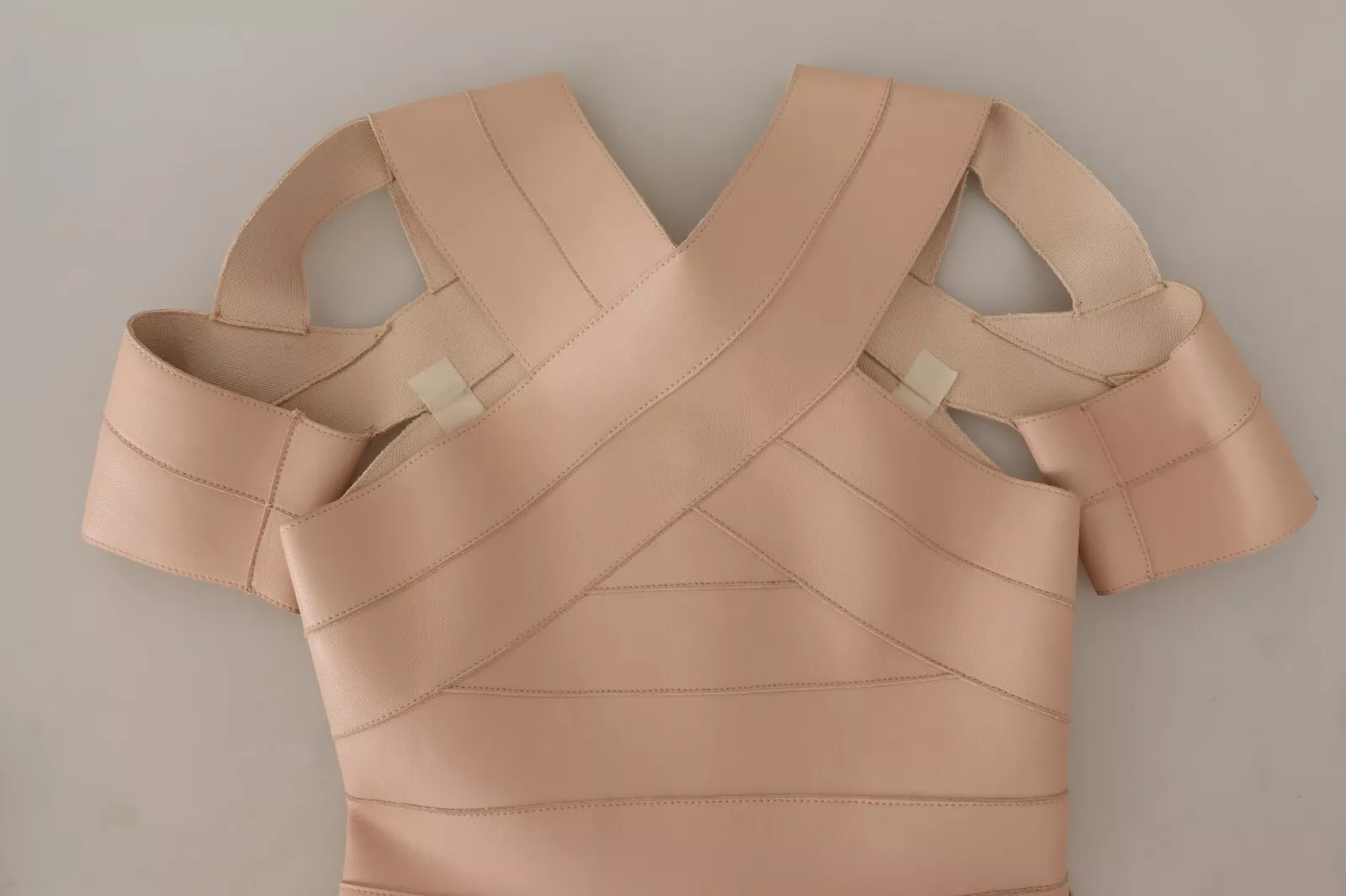 Beige Leather Open Shoulder Sheath Mini Dress