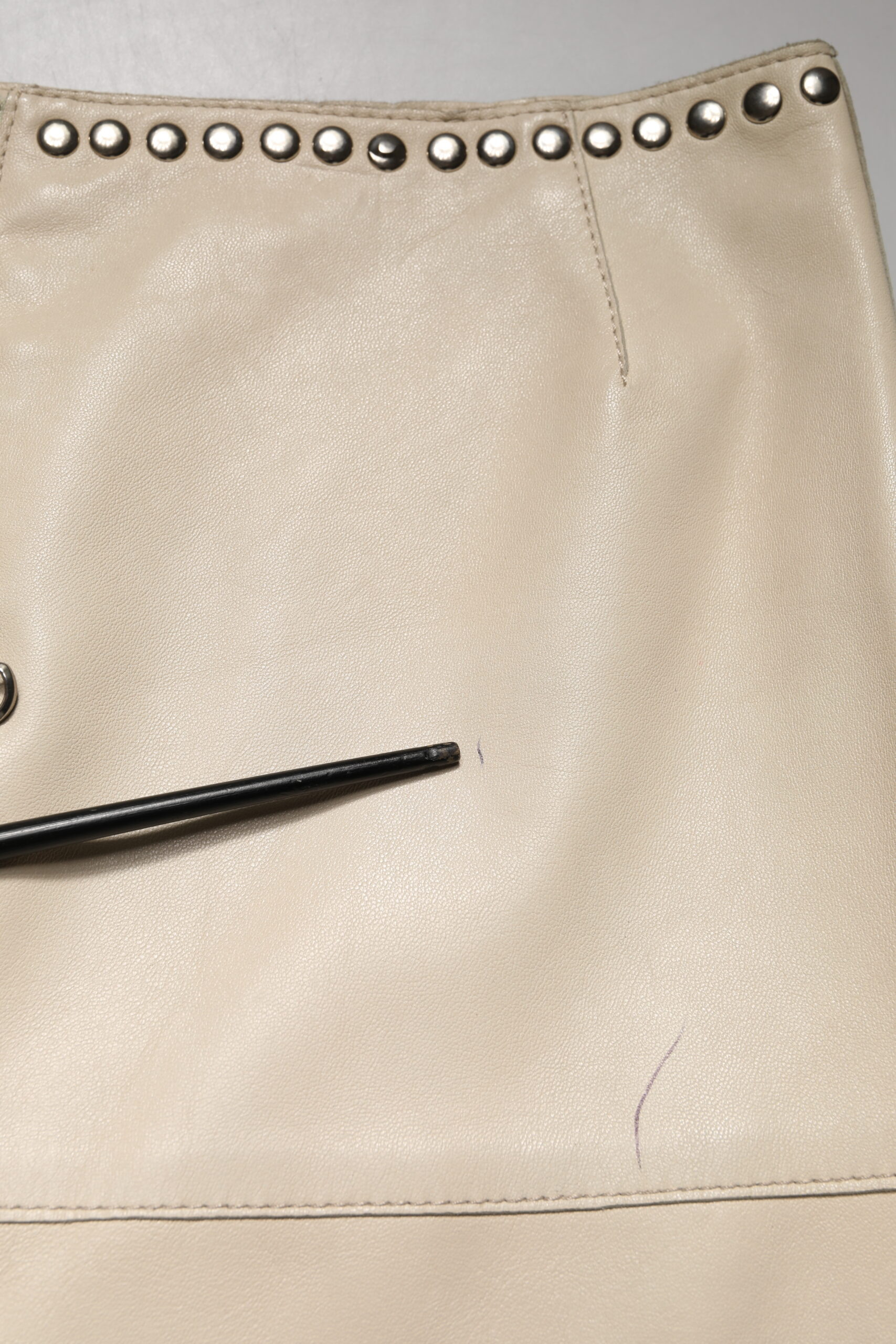 Beige Leather Studs Mid Waist Mini Skirt