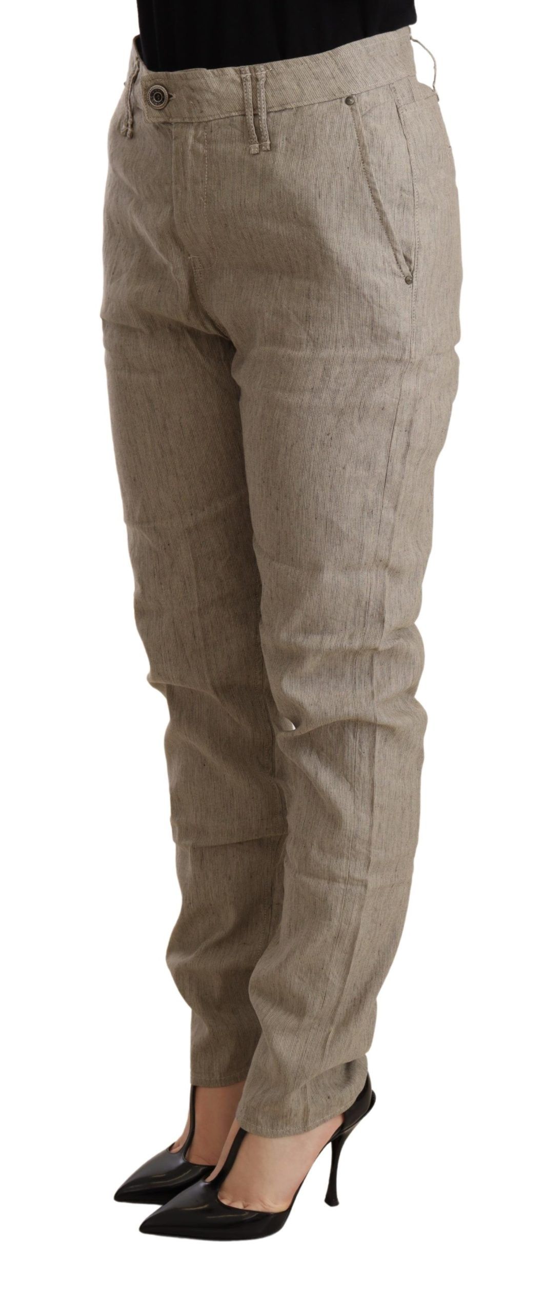 Beige Mid Waist Casual Baggy Stretch Trouser