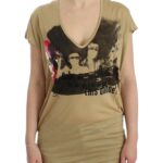 Beige motive print t-shirt