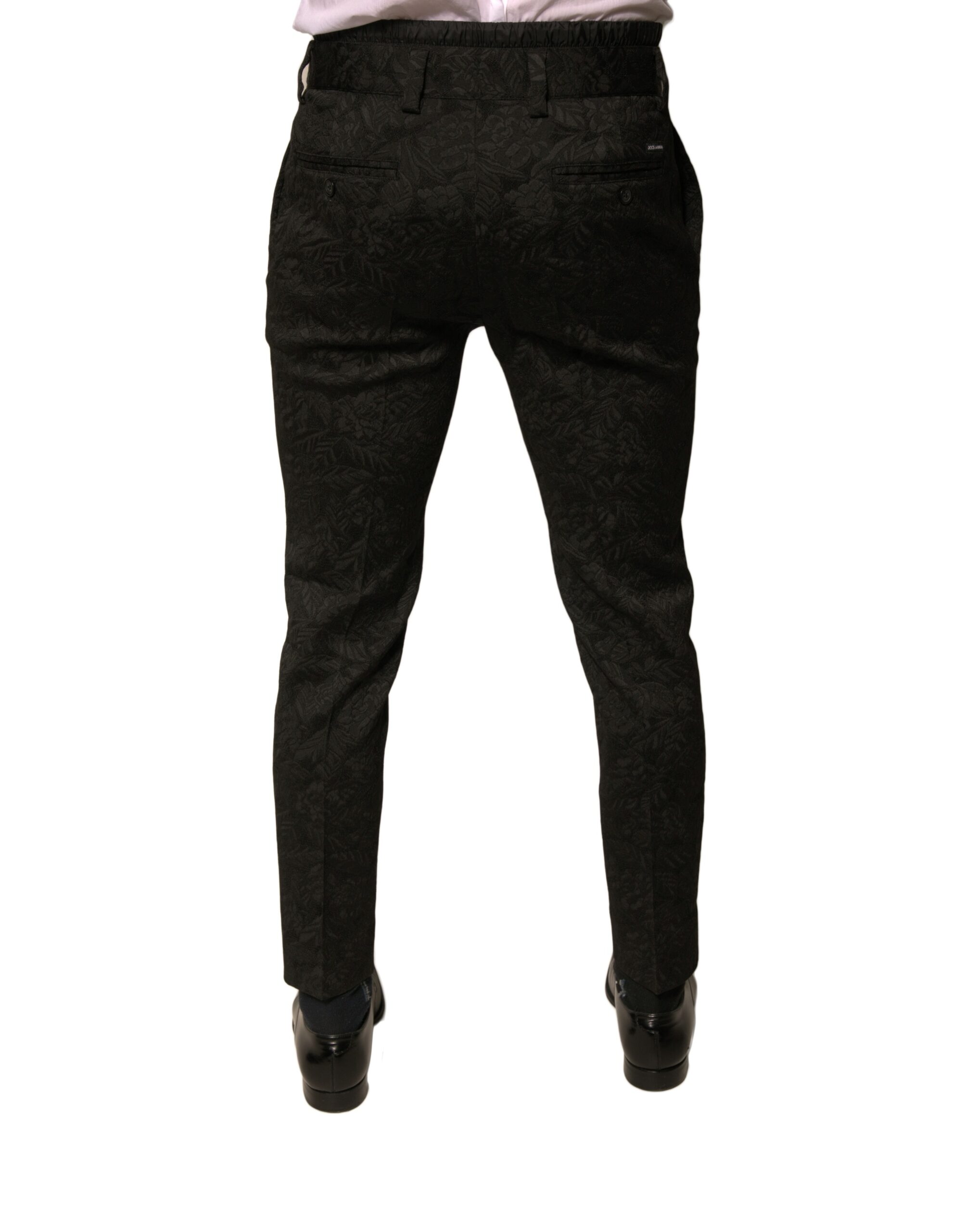 Black Brocade Polyester Skinny Men Dress Pants