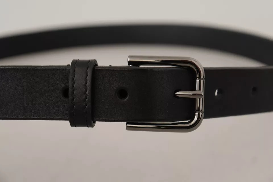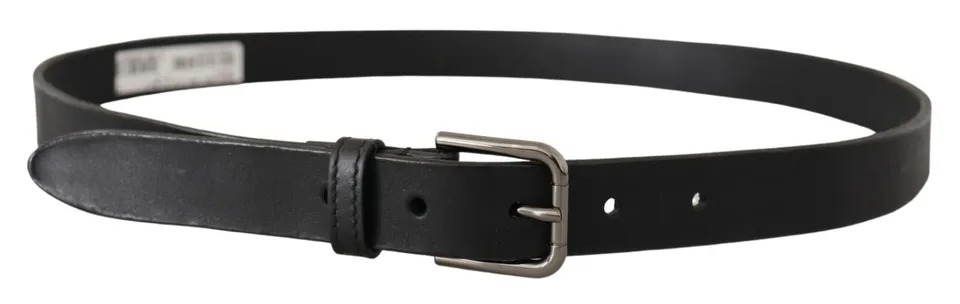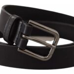 Black Calf Leather Classic Metal Logo Buckle Belt