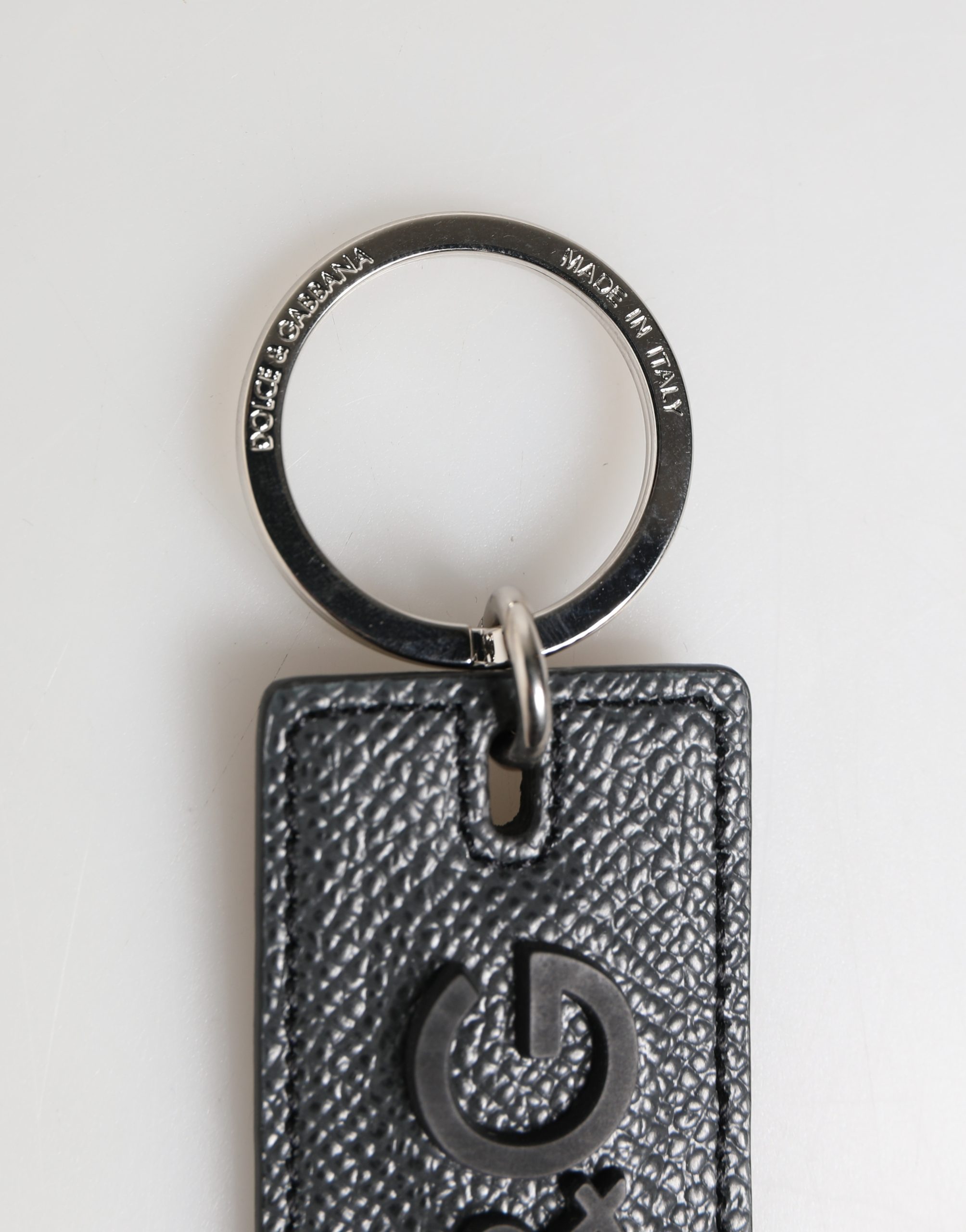 Black Calf Leather D&G Logo Metal Ring Keyring Keychain
