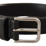Black Calf Leather Silver Tone Logo Metal Buckle Belt