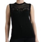Black Cashmere Lace Trim Sleeveless Tank Top