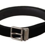 Black Classic Velvet Logo Engraved Metal Buckle Belt