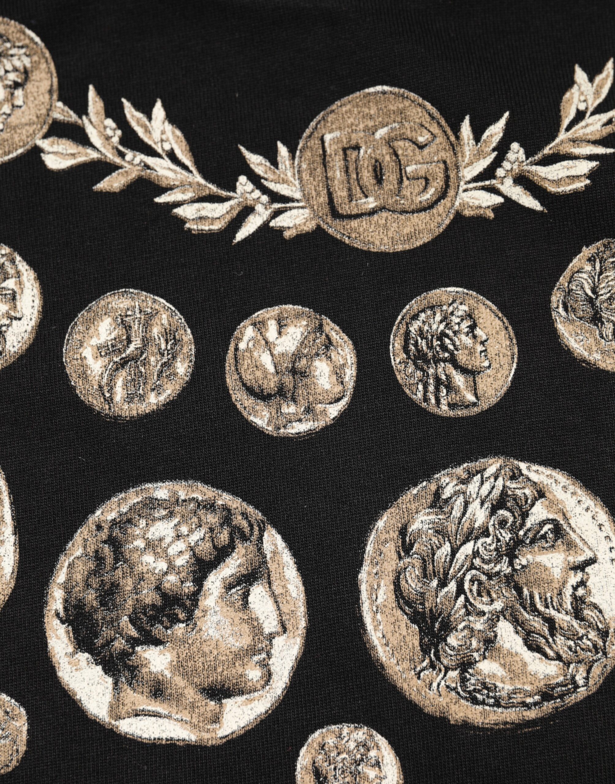 Black Coin Print Cotton Crew Neck T-shirt