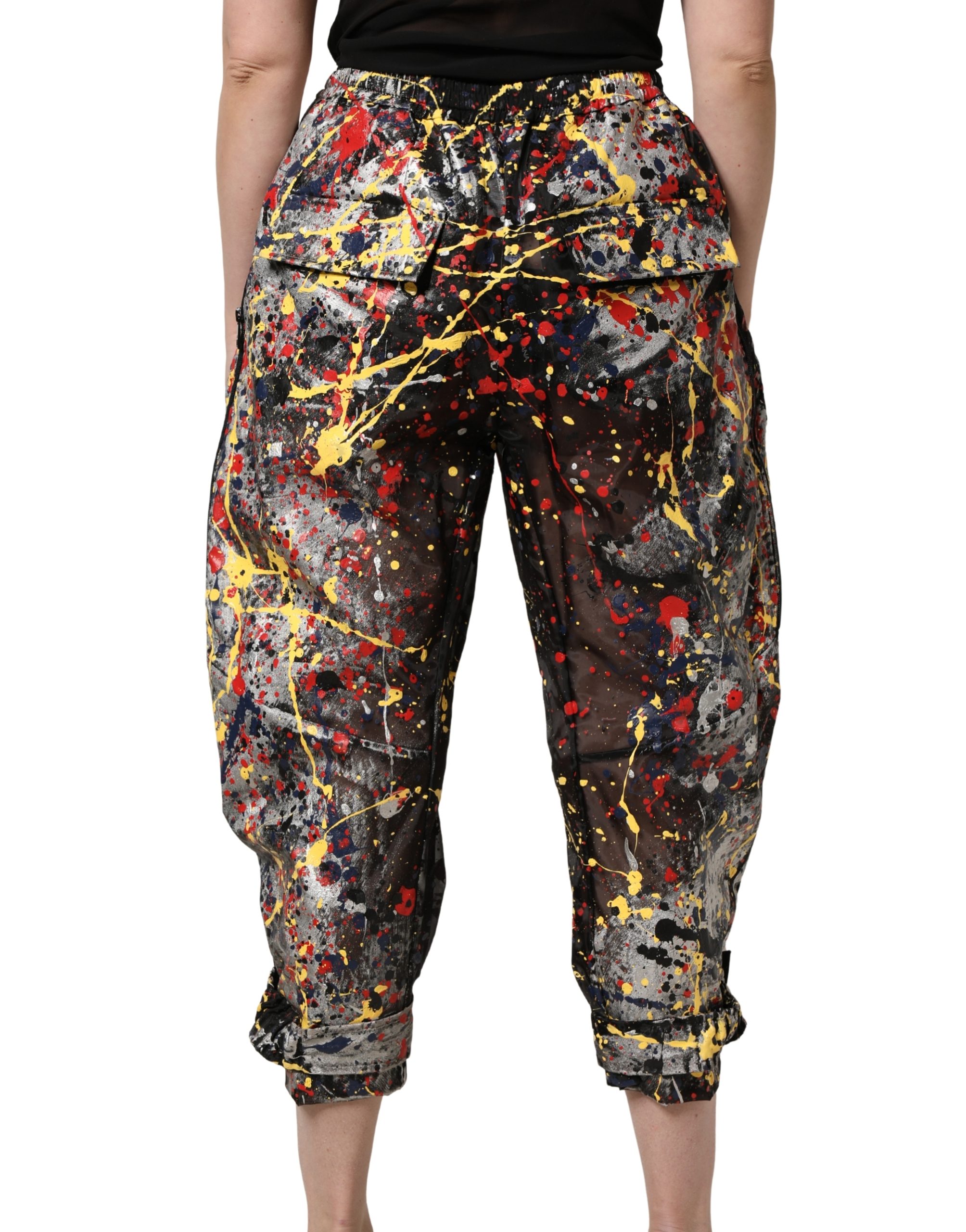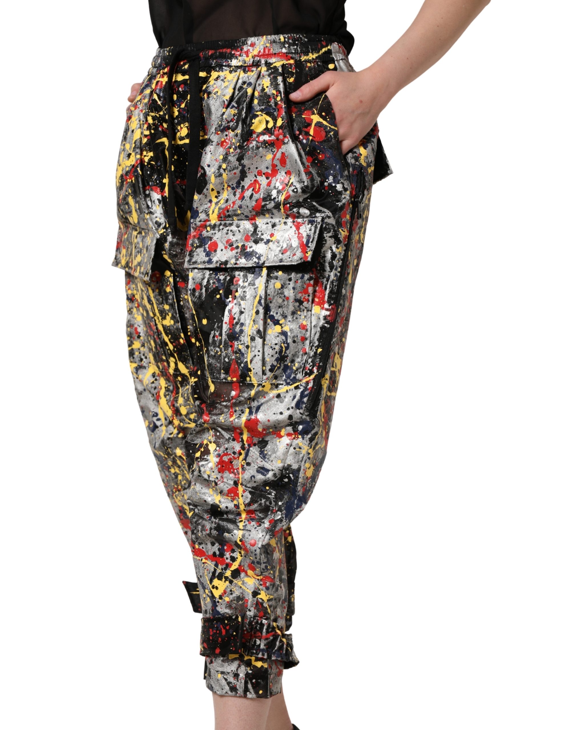 Black ColorSplash Effect Cargo Cropped Pants