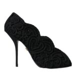 Gorgeous preowned with tags 100% Authentic Dolce & Gabbana black Bette shoes with a high stiletto heel, an open toe and a figured neckline sewn from openwork cord ricamo. Model: Heels pumps Colour: Black Material: 60% Cotton 20% Polyester 20% Viscose Sole: Leather Logo details Made in Italy Very high quality and comfort