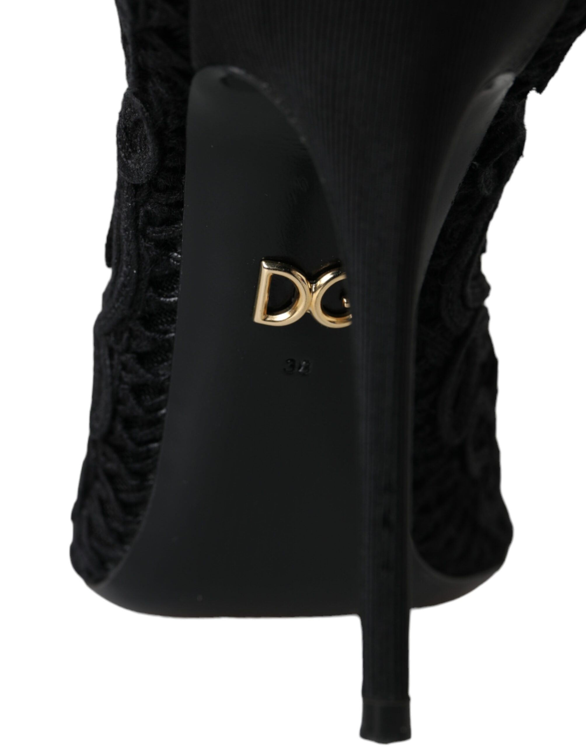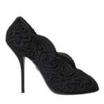 Gorgeous, 100% Authentic Dolce & Gabbana black Bette shoes with a high stiletto heel, an open toe and a figured neckline sewn from openwork cord ricamo. Model: Heels pumps Color: Black Material: 60% Cotton 20% Polyester 20% Viscose Sole: Leather Logo details Made in Italy Very high quality and comfort