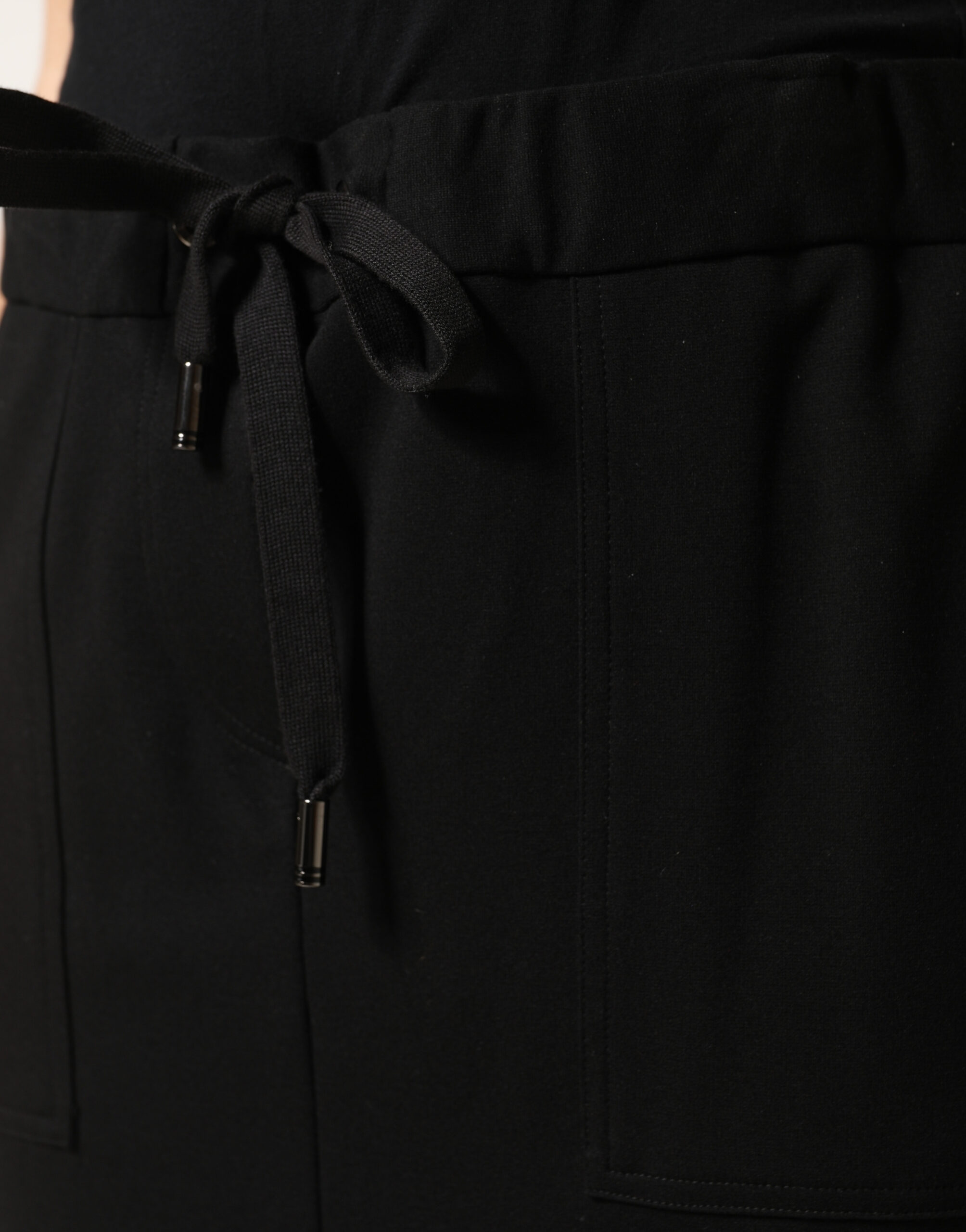 Black Cotton Drawstring Long Maxi Cargo Skirt