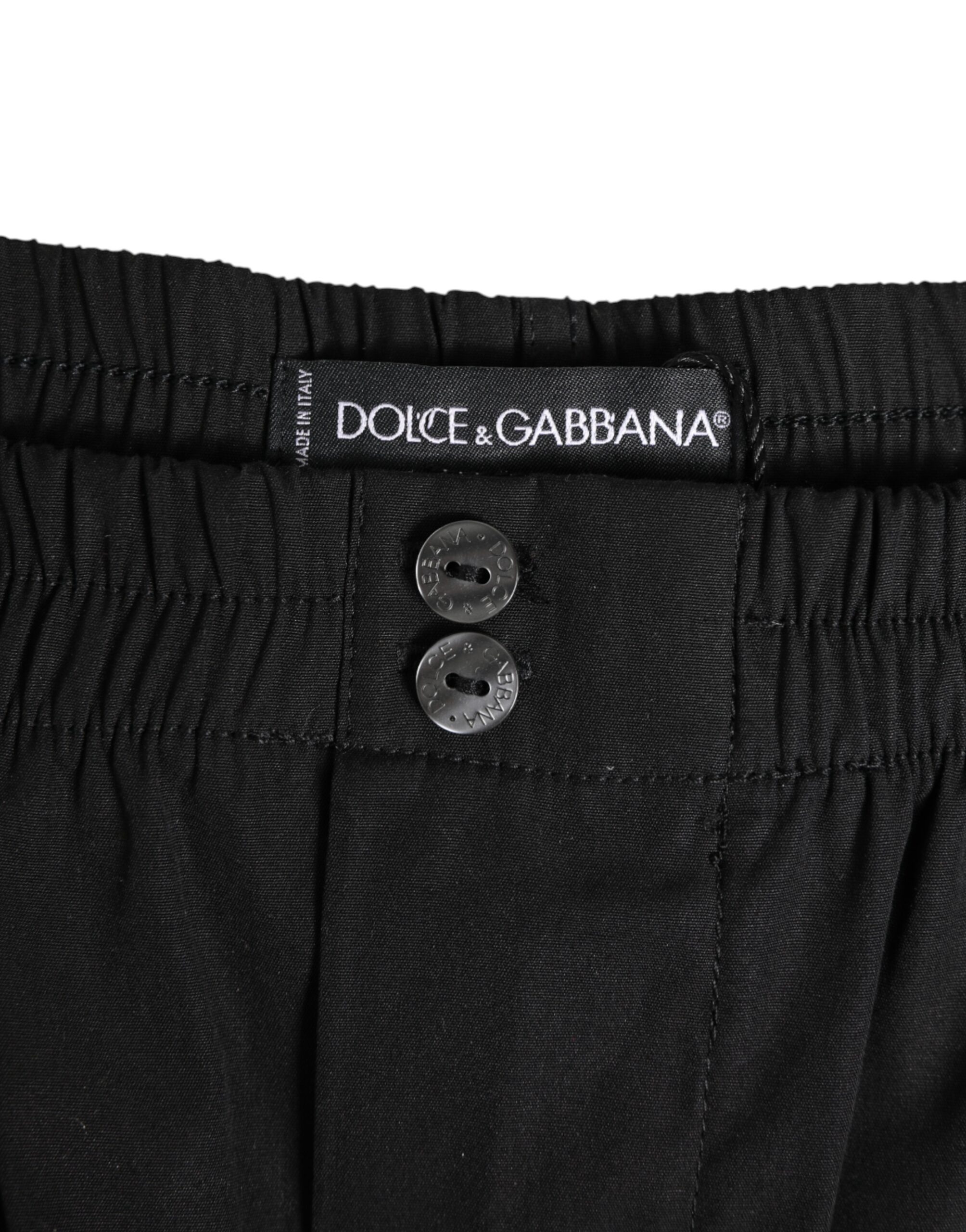 Black Cotton Elastic Waistband Button Swimwear