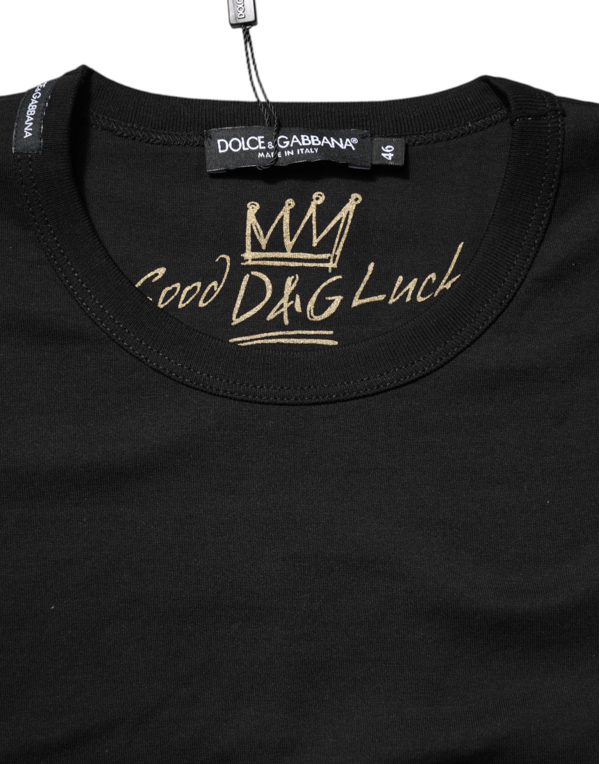 Black Cotton Goodluck Tee Crew Neck T-shirt
