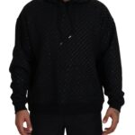 Black Cotton Hooded Printed Men Pullover Sweater