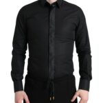 Black Cotton Logo Formal GOLD Dress Shirt