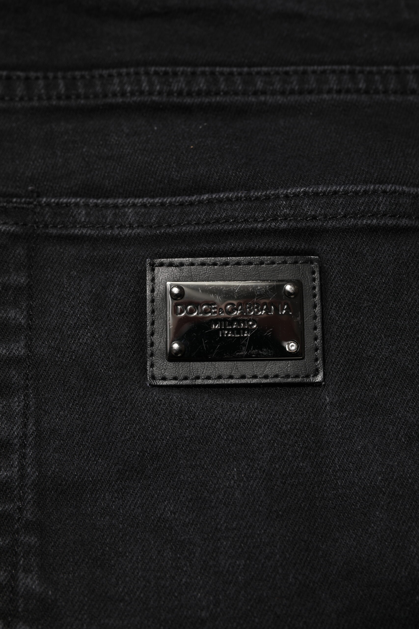 Black Cotton Logo Plaque Slim Fit Denim Jeans