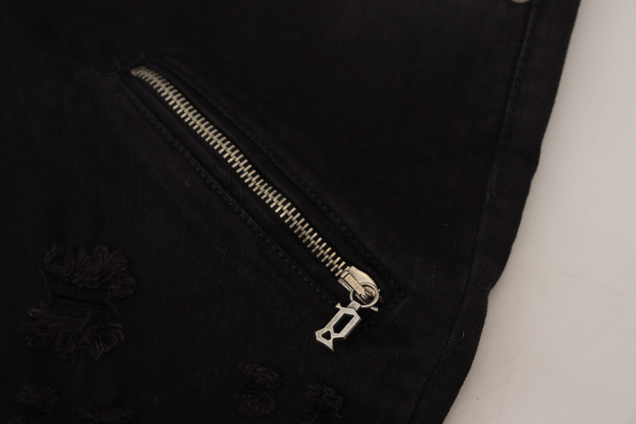 Black Cotton Mid Waist Skinny Slim Fit Denim Jeans