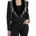 Black Crystal Embellished Overcoat Jacket