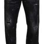 Black Crystal Embellished Tattered Denim Jeans