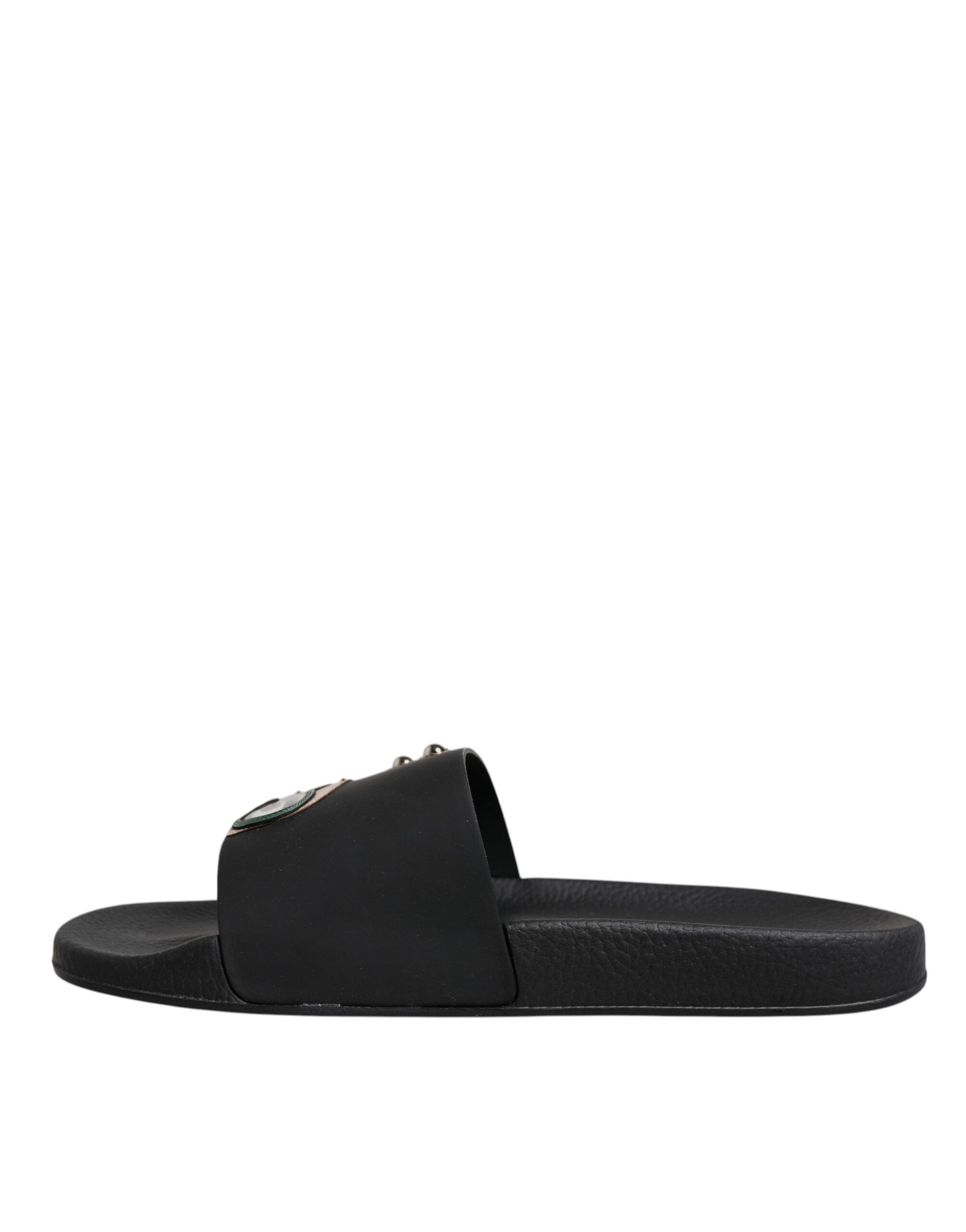 Black Divers Leather Flats Slides Sandals Beachwear Shoes