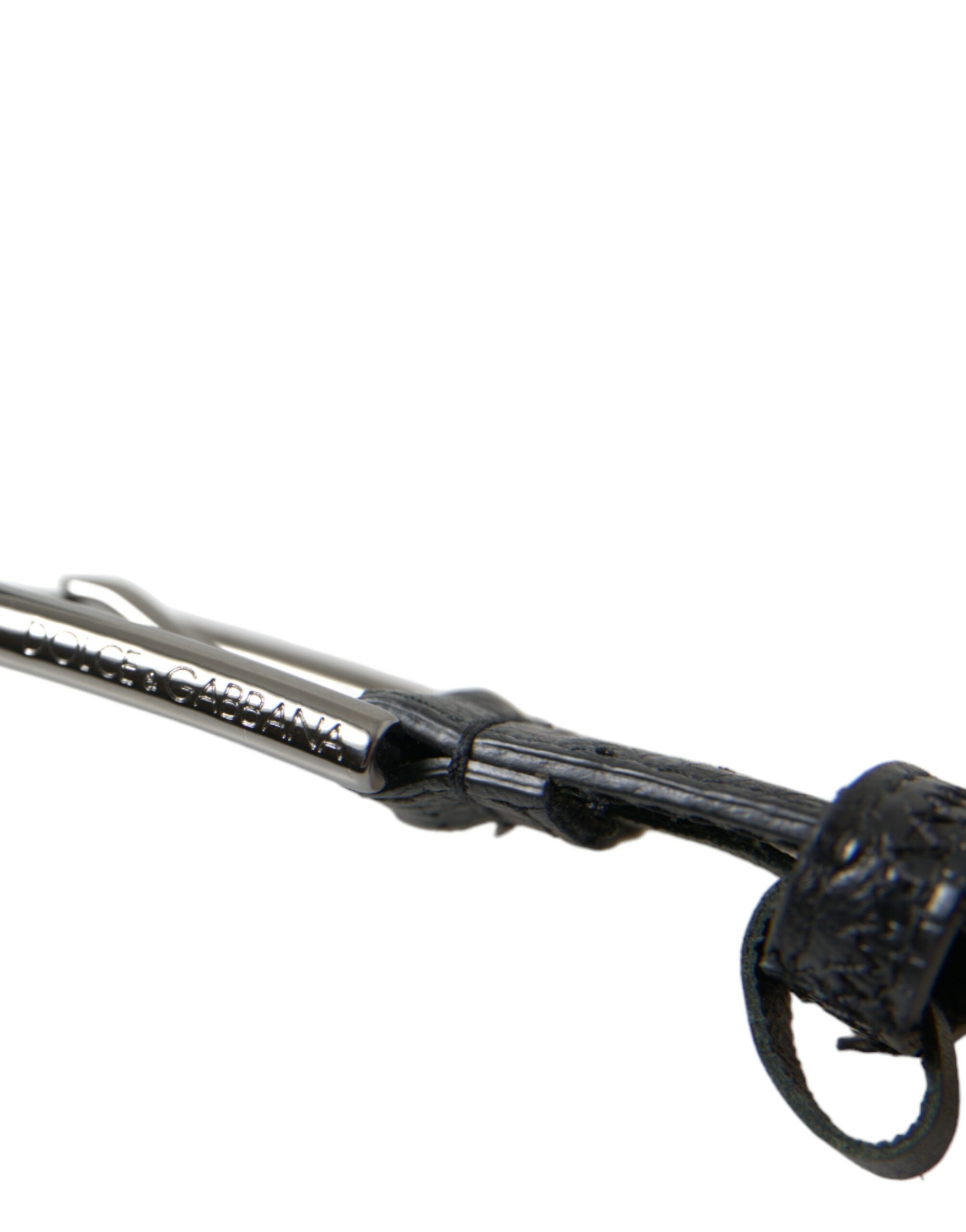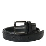 Black Exotic Leather Silver Metal Buckle Belt