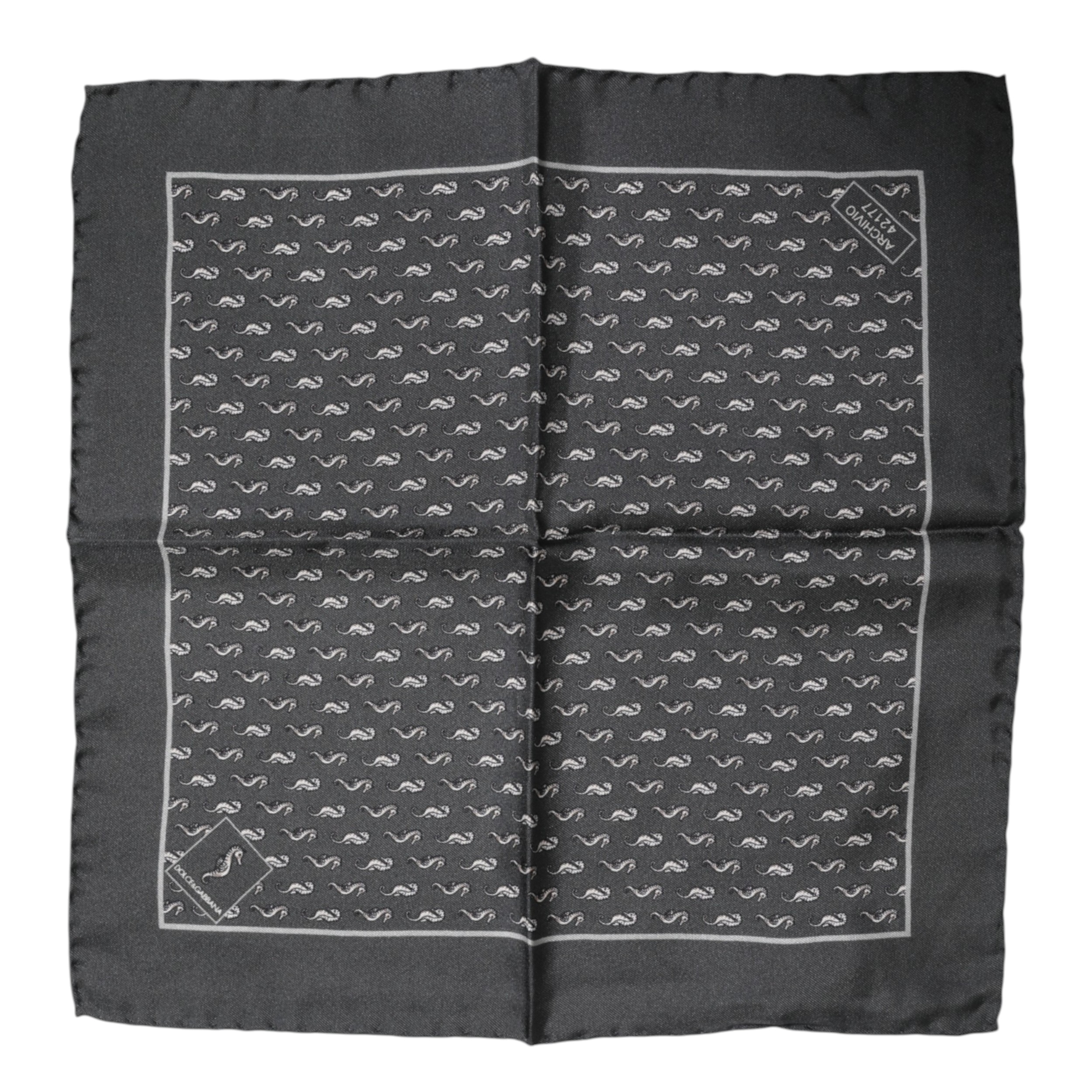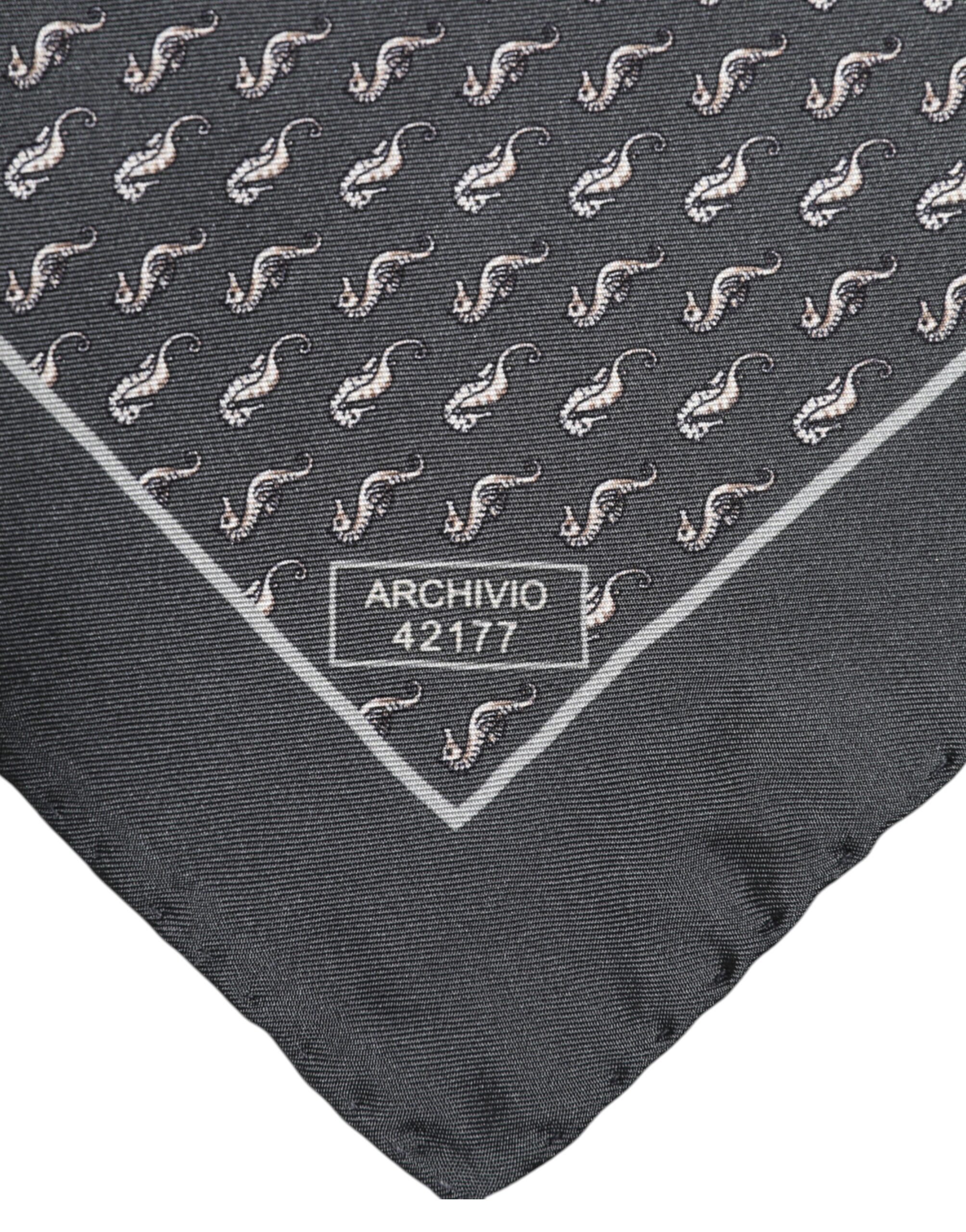 Black Fish Print Silk Square Men Foulard Scarf
