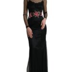Black Floral Embroidery Mesh Tulle Gown Dress