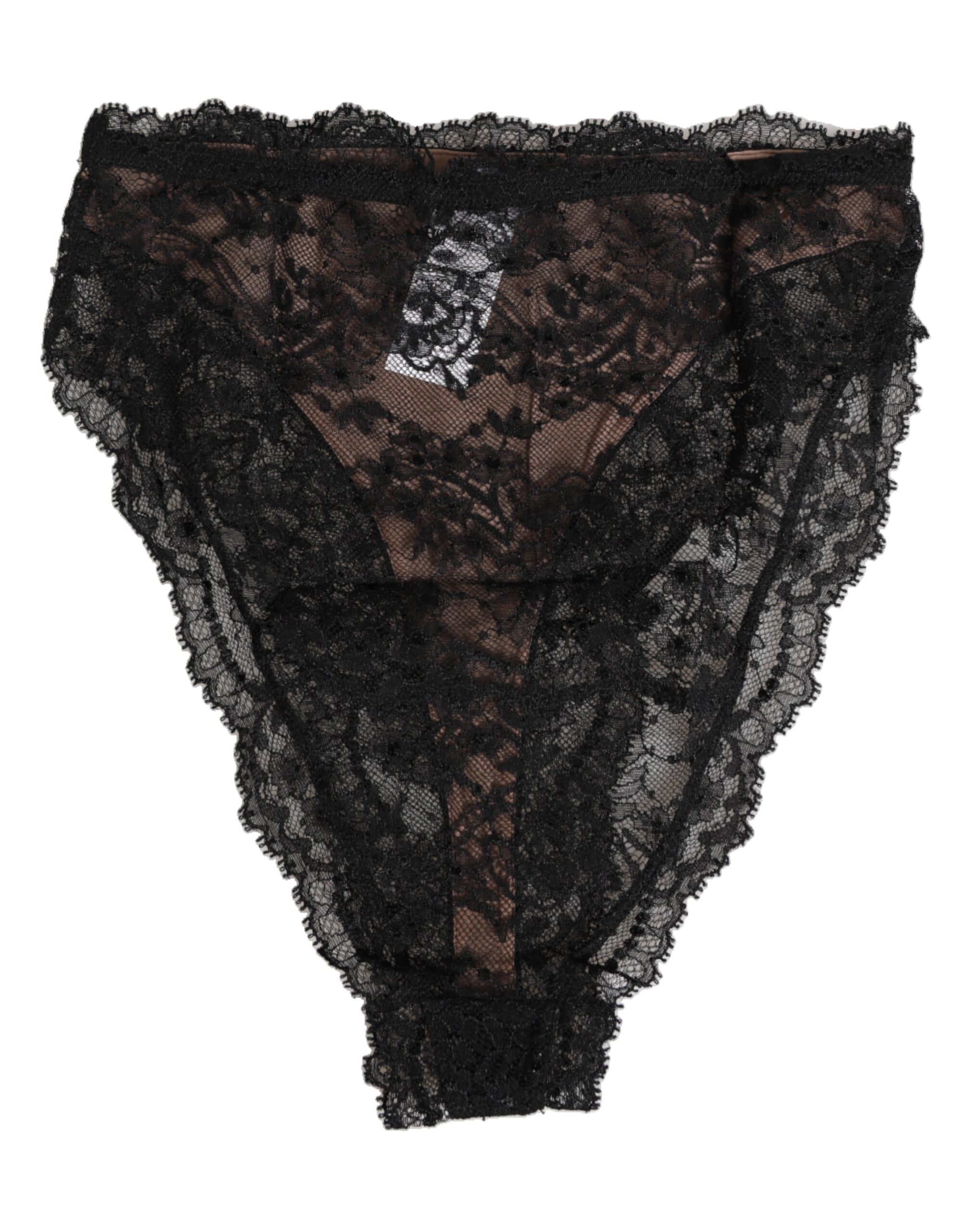 Black Floral Lace Mesh High Brief Panty Underwear
