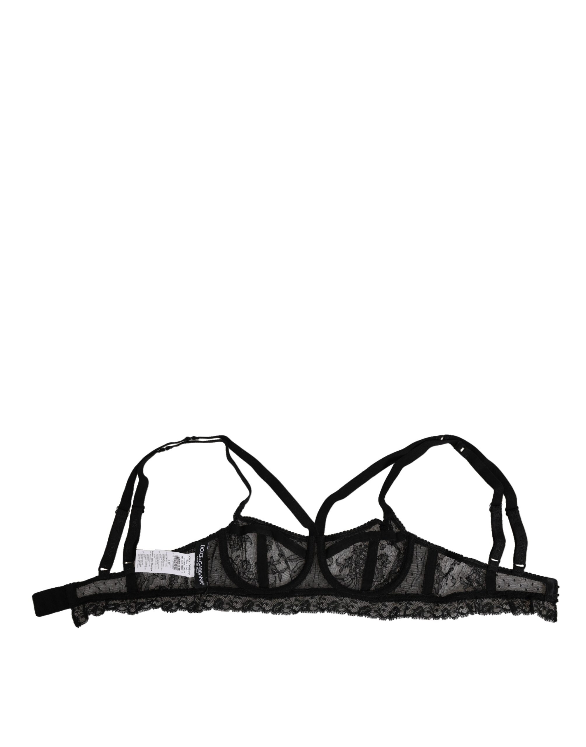 Black Floral Lace Nylon Balconcino Bra Underwear