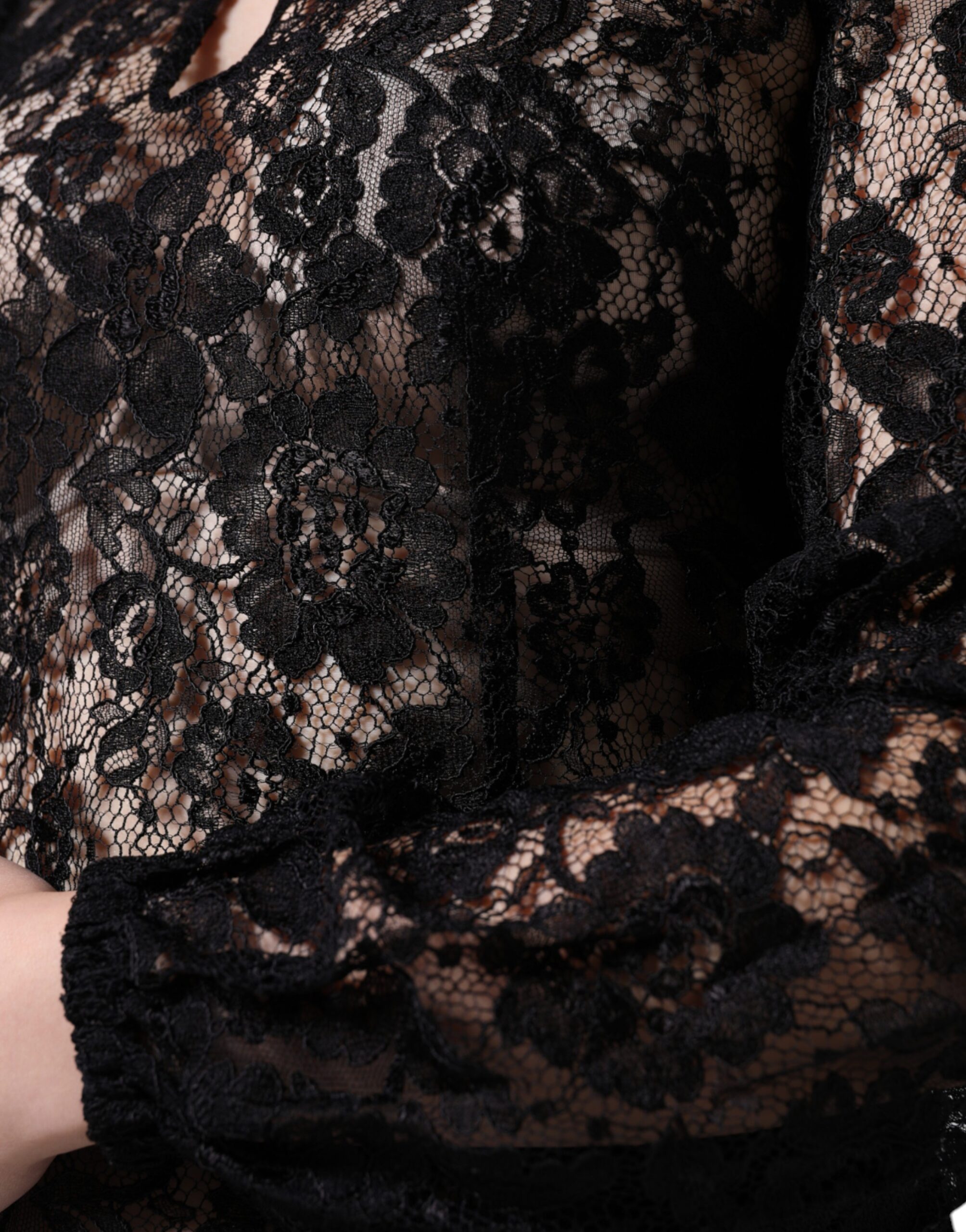 Black Floral Lace See Through Long Sleeve Top