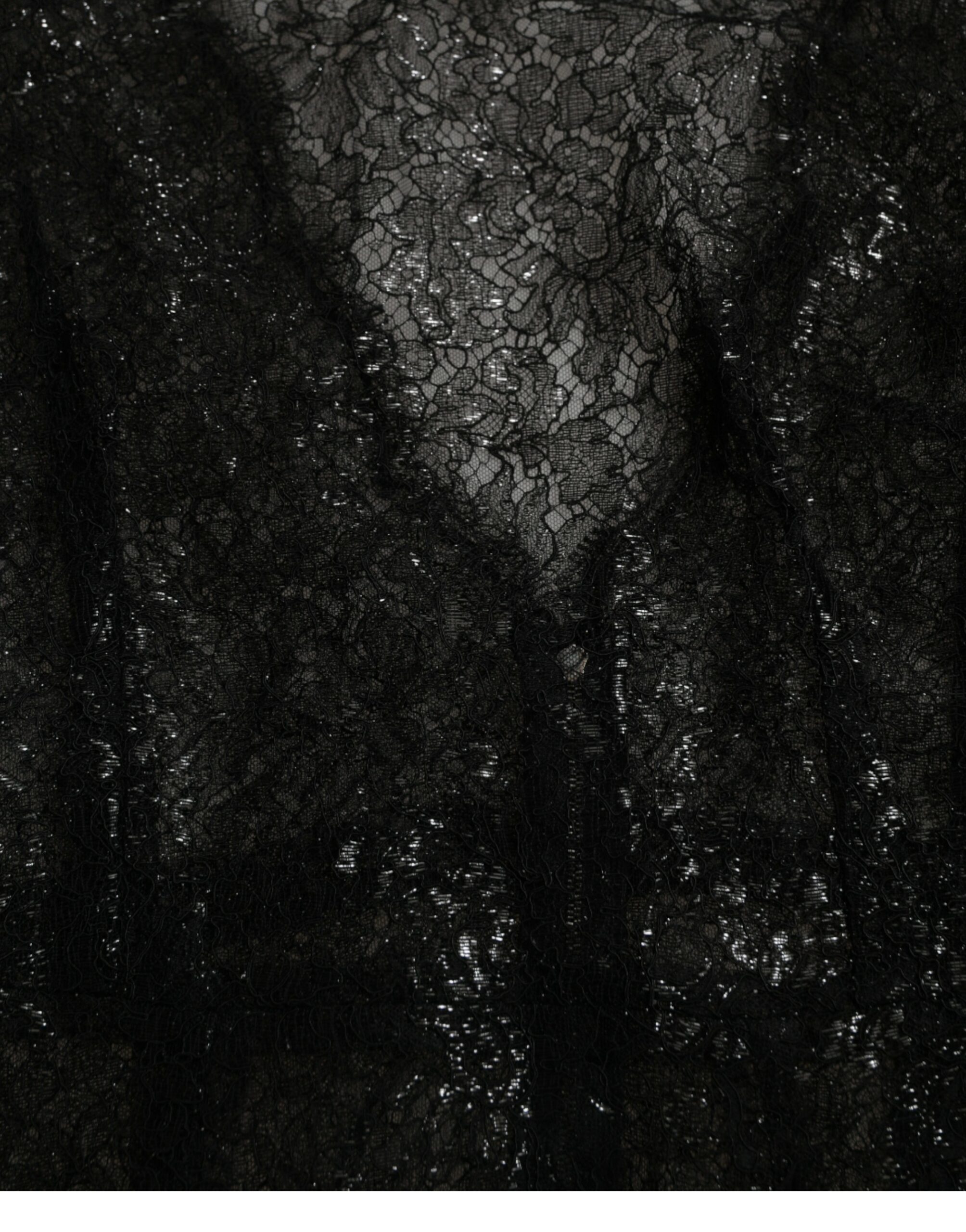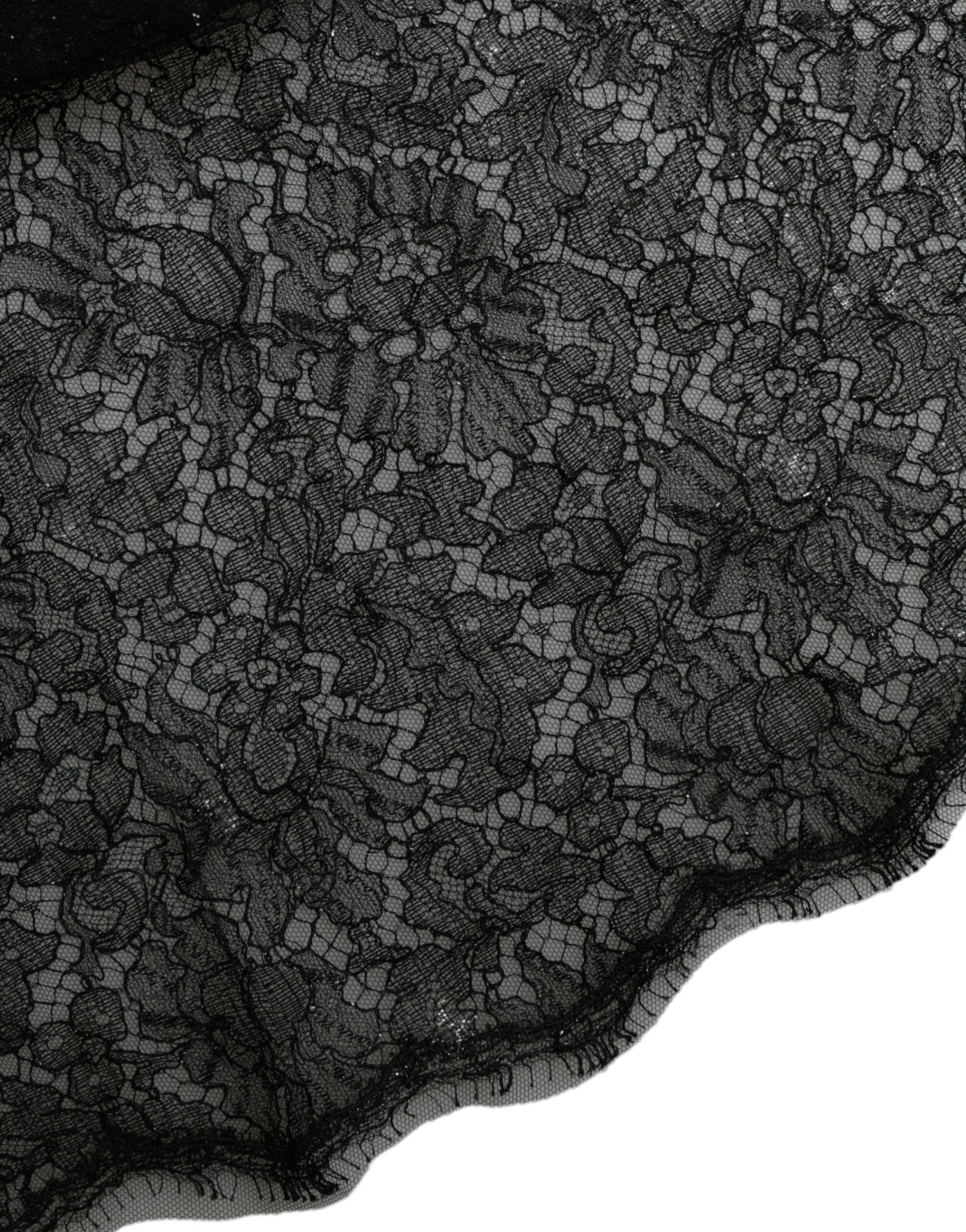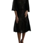 Black Floral Lace Sheer A-line Midi Dress