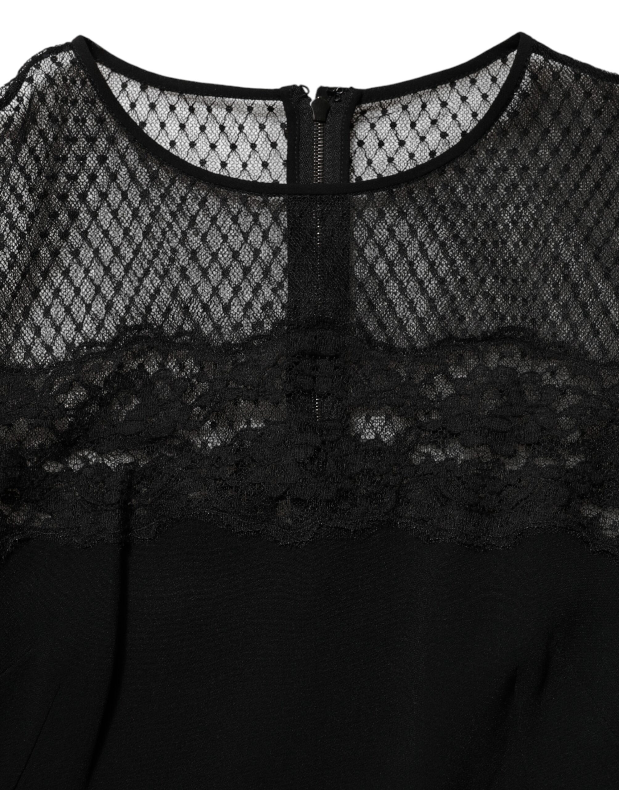 Black Floral Lace Trim Sheath A-line Dress