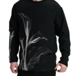 Black Floral Print Crewneck Pullover Sweater