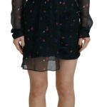 Black Floral Silk Long Sleeves Sheath Mini Dress