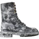 Black Gray Leather Mid Calf Boots Shoes