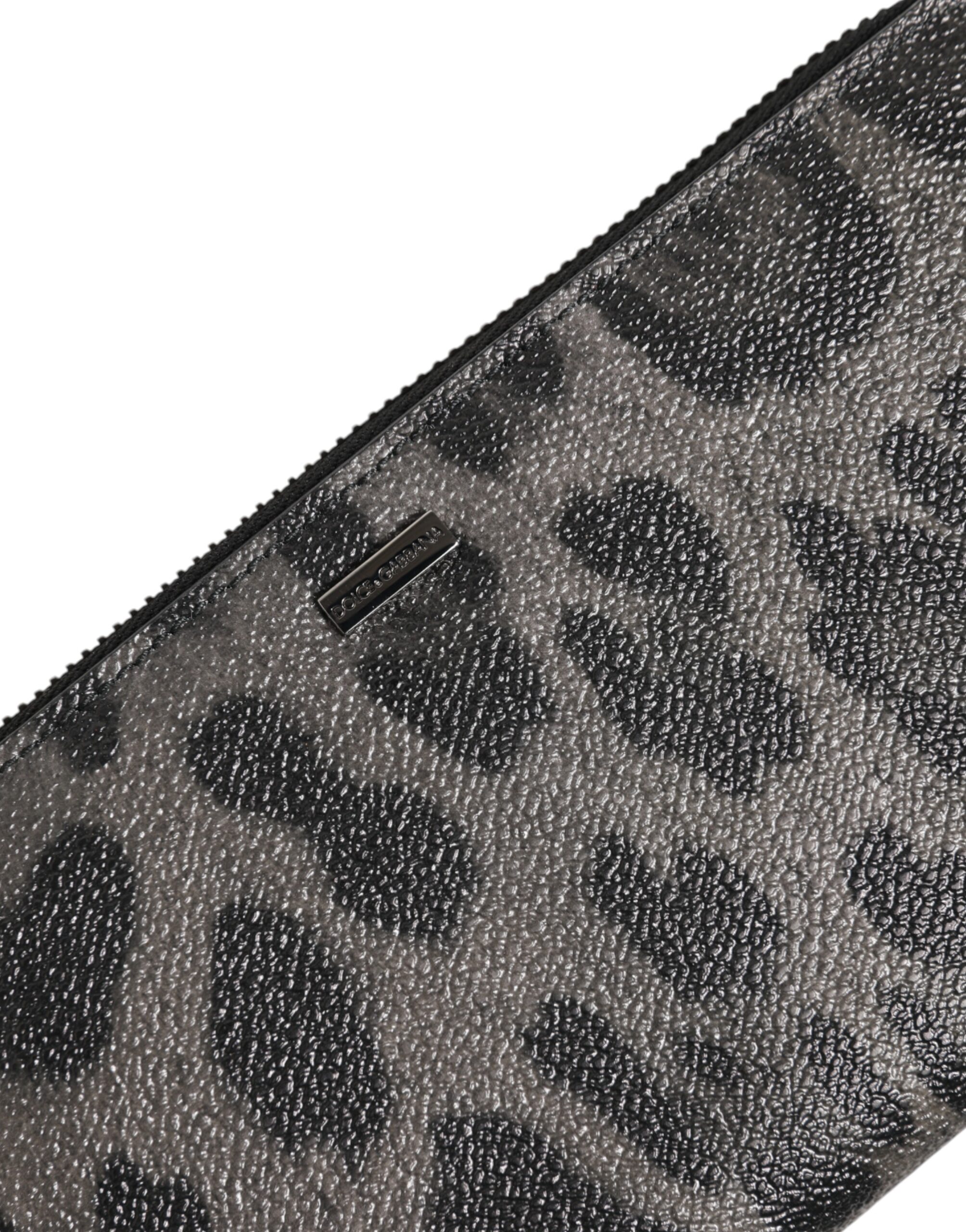 Black Gray Leopard Leather Zip Around Continental Wallet