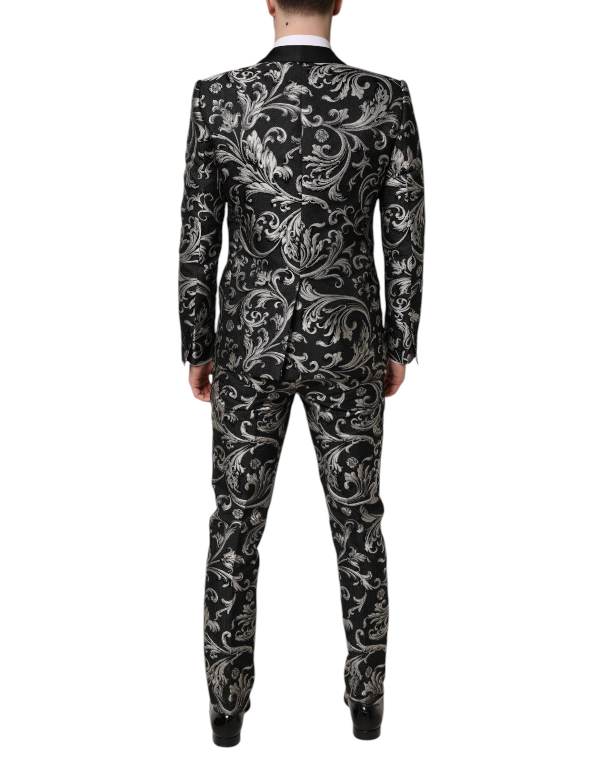 Black Gray MARTINI Jacquard Men 3 Piece Suit