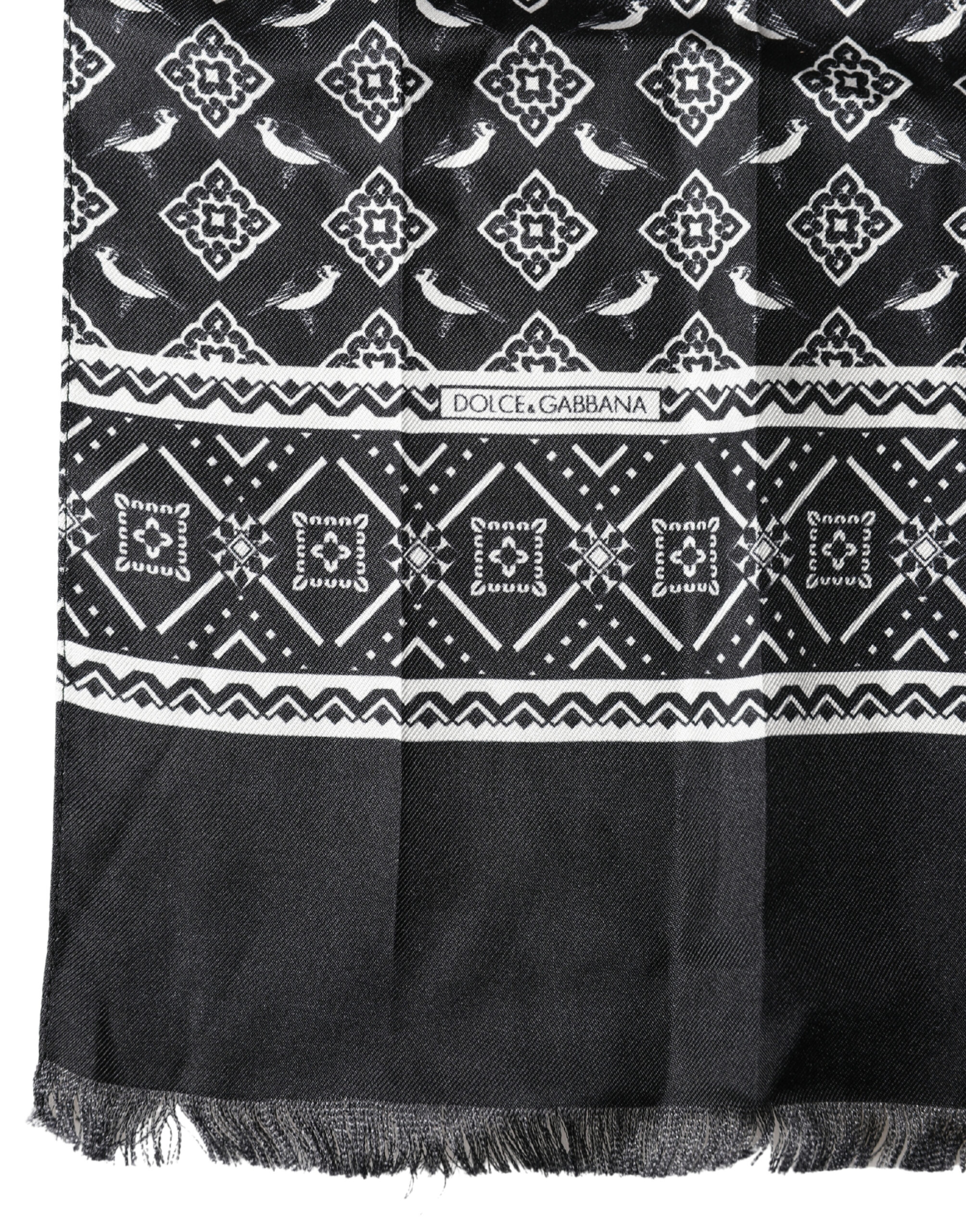 Black Gray Silk Bird Fringe Wrap Foulard 140cm X 23cm Scarf