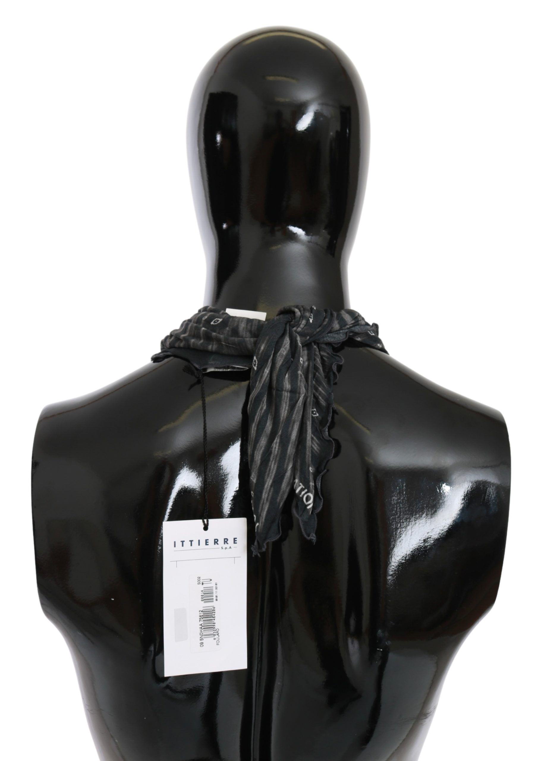 Black Gray Viscose Foulard Branded Scarf