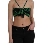 Black Green Leaf Silk Halter Cropped Top