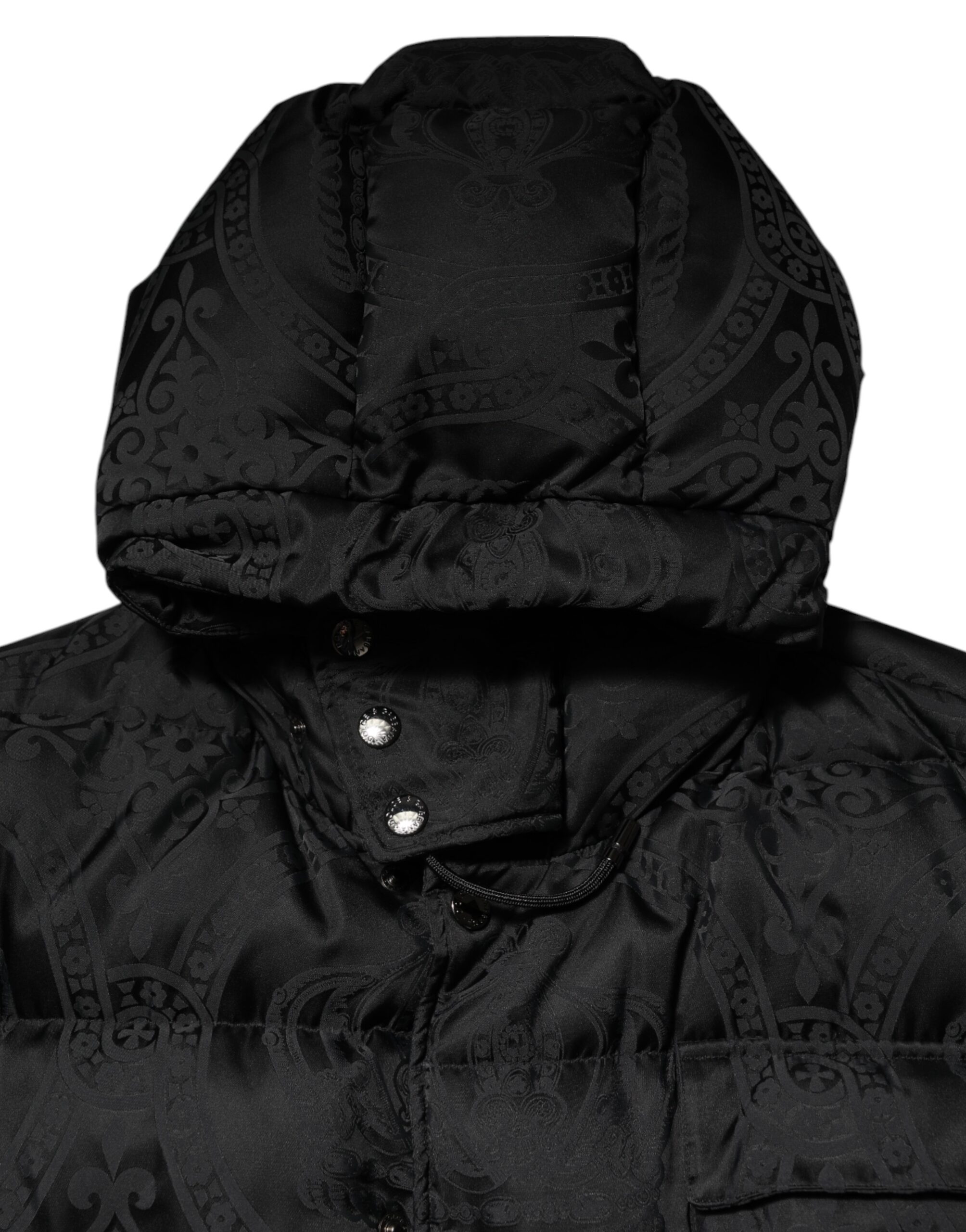 Black Jacquard Quilted Puffer Hooded Jacket